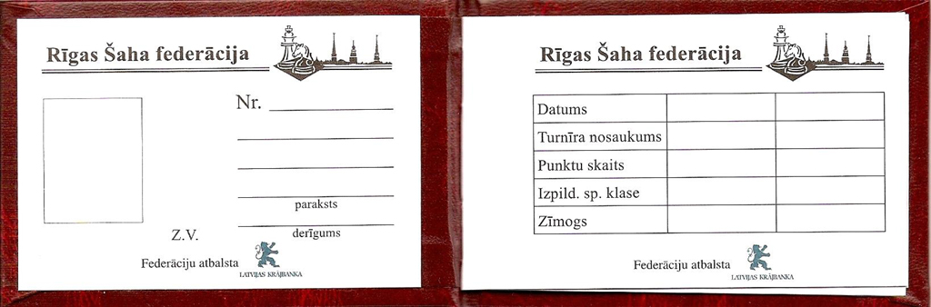 Rīgas šaha federācija uzsāk apliecību izsniegšanu šahistiem. Dokumentā tiks atspoguļoti šahista iegūtie punkti turnīros, ka arī izpildītā sporta klase. Lai saņemtu šahista apliecību ir nepieciešams iesniegt 1 foto dokumentiem. Maksa par apliecības noformēšanu – 4.00 Ls.